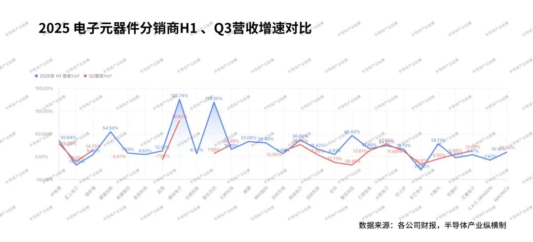 数据显示,2025年上半年元器件分销商的营收呈现出增长趋势,增速达38.31%;从增速上看,中国大陆的元器件分销商在上半年的增速略高于全球市场,达到38.33%。