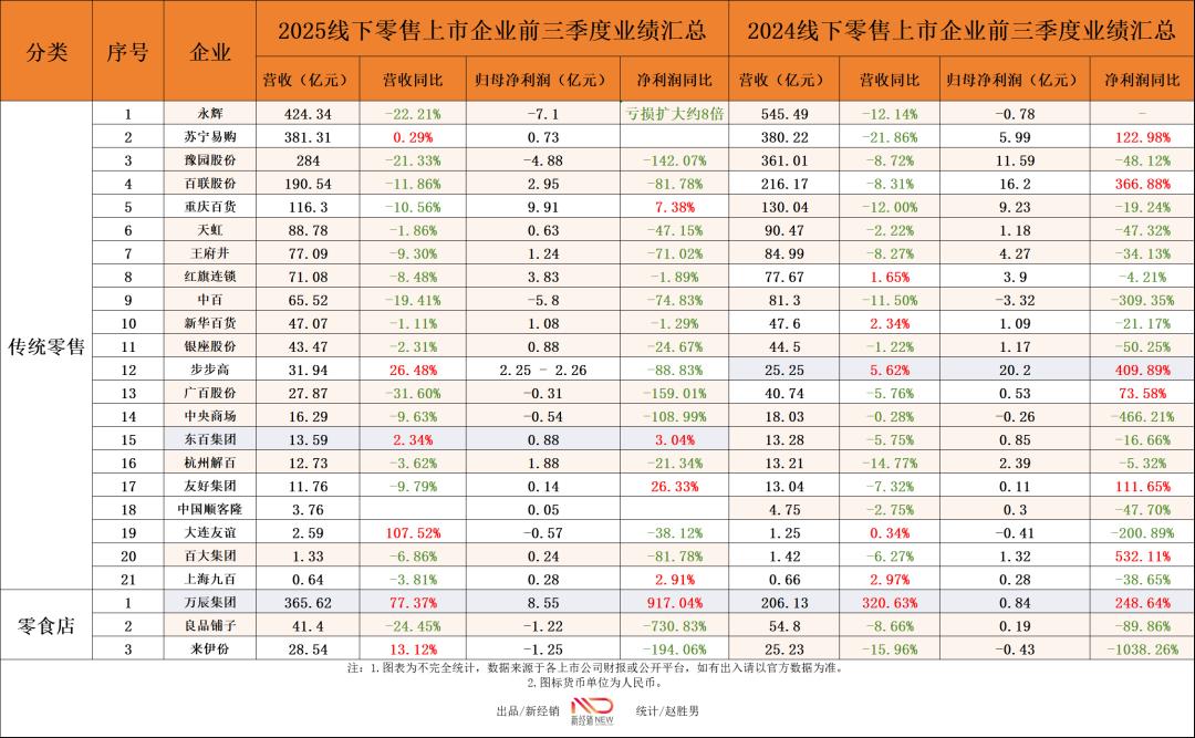 这些业态无一不在持续分流传统零售的客流,但并不意味着整个行业已失去希望。在行业整体承压的2025年前三季度,24家代表性企业中仍有4家实现了利润增长,更有2家企业顶住压力,实现了营收与利润的逆势双增。