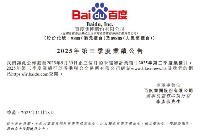 今年的三季报,百度一改往日将AI业务纳入整体营收框架的做法,首次披露了AI业务收入情况,百度的AI转型进程或将自此次报告之后被展现得更加清晰。