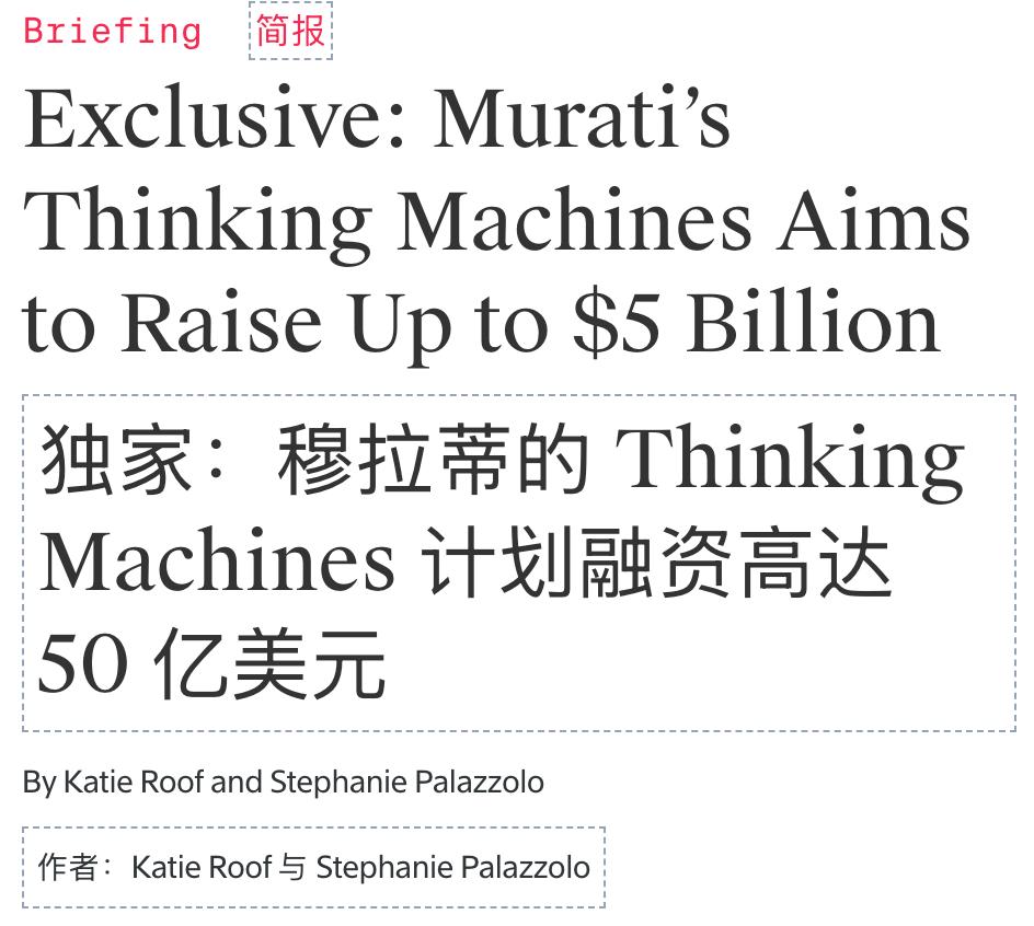 Thinking Machines Lab又要融资了,这次要筹集40亿至50亿美元。