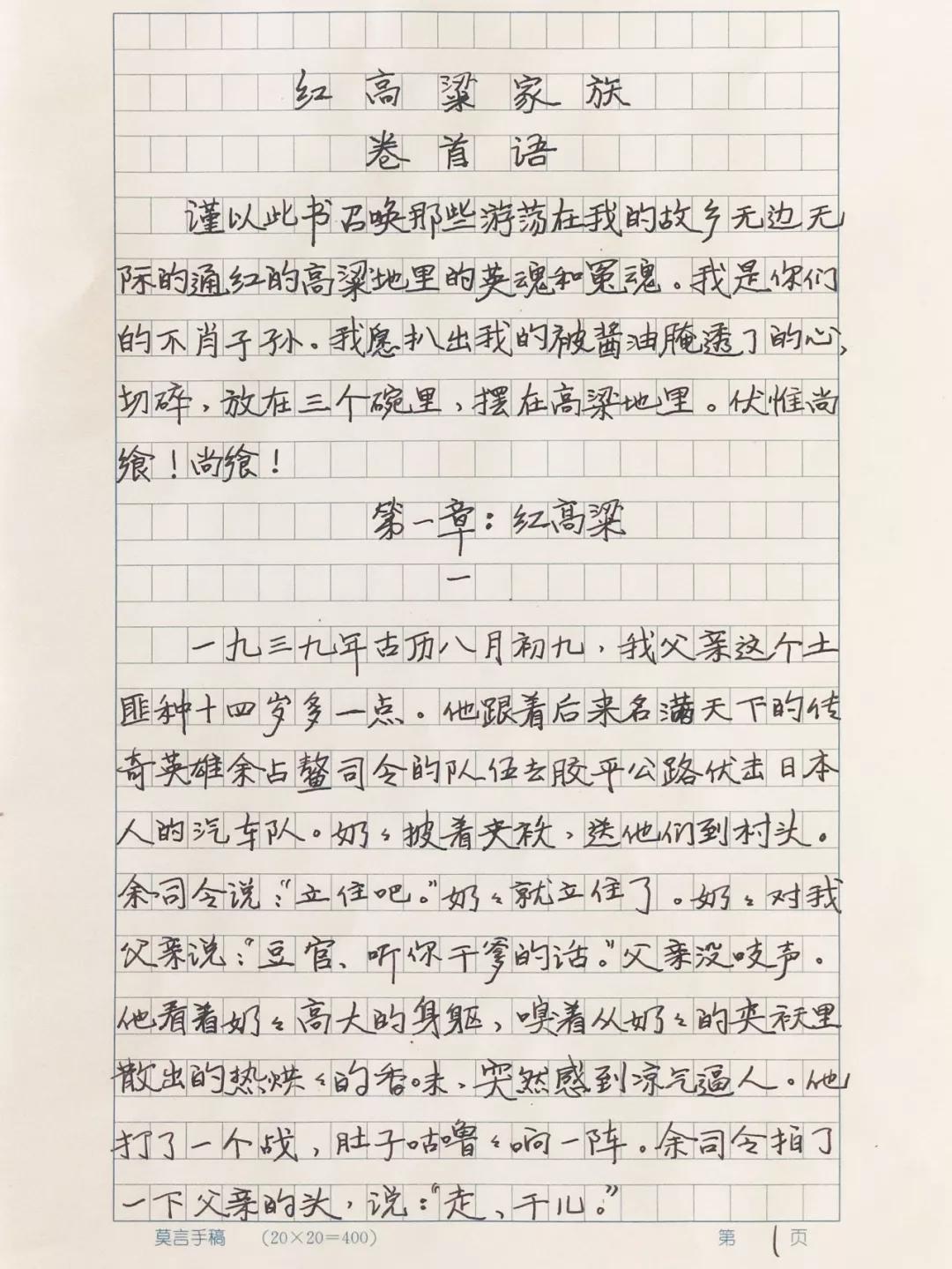 《红高粱家族》手稿