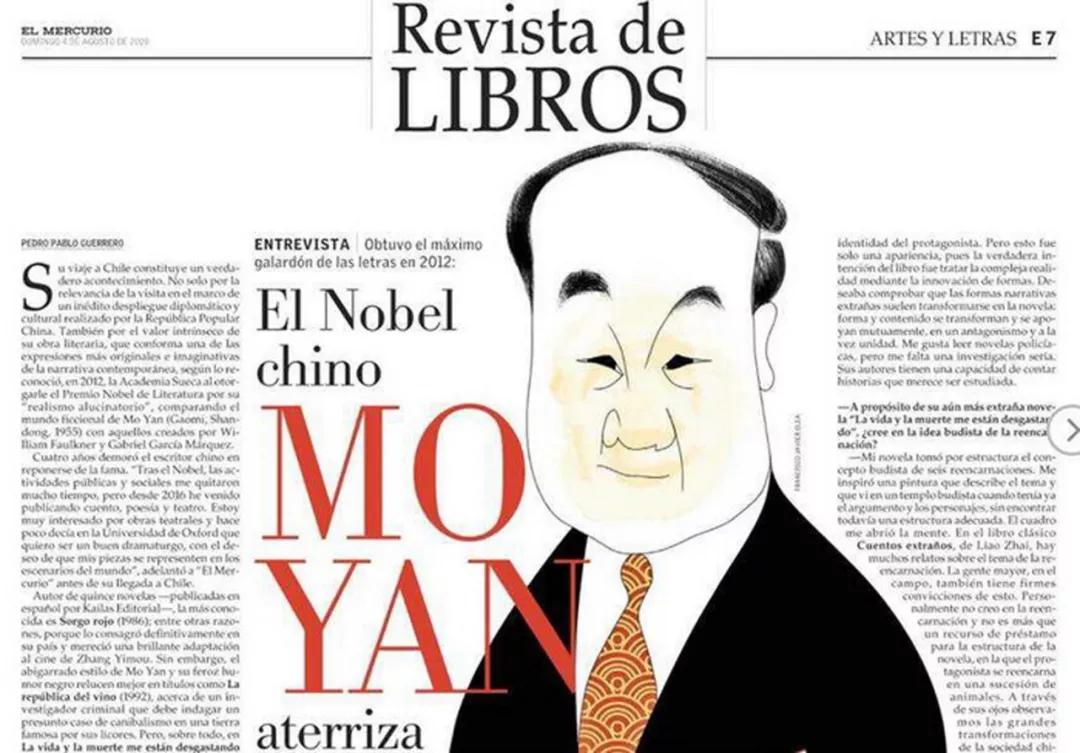 智利最大报纸《信使报》刊登对莫言的介绍及采访