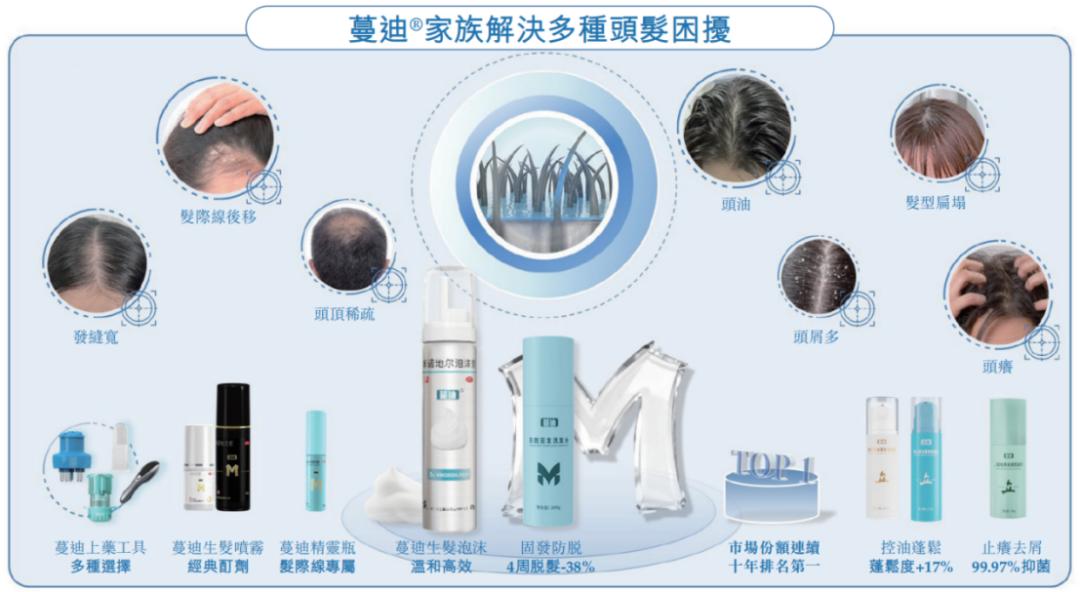 招股书显示,蔓迪国际的产品主要聚焦两个领域——皮肤健康和体重管理,其中又以头发健康为核心。