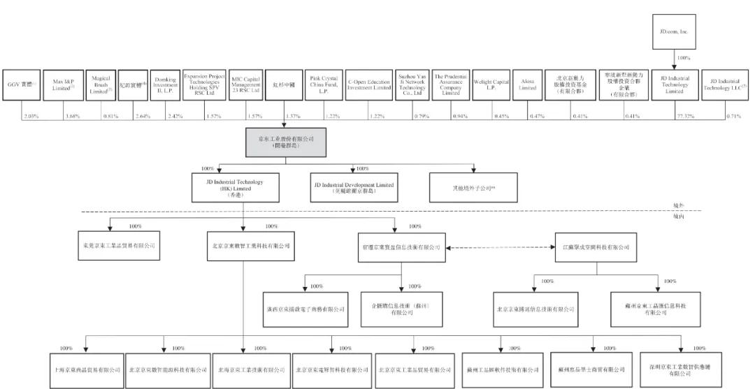 于本公告日期,京东集团通过其全资子公司持有京东工业已发行股本总额的约77.32%。京东集团创始人刘强东通过Max I&P Limited持股为3.68%,这部分股权是京东工业对刘强东的奖励。