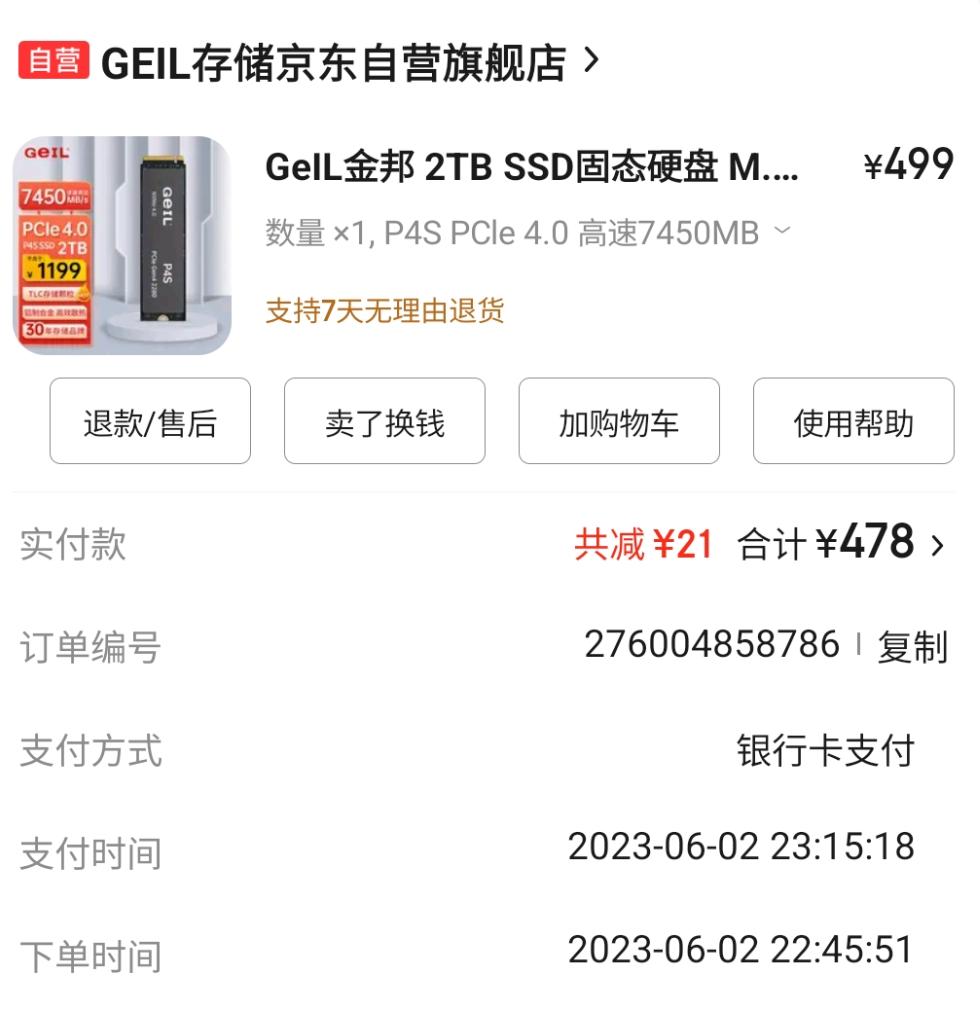 由于当时买的这个固态用的挺好的,这两年也没出啥幺蛾子,就想着买回同款,为此还专门去京东把两年前的购买链接翻出来。