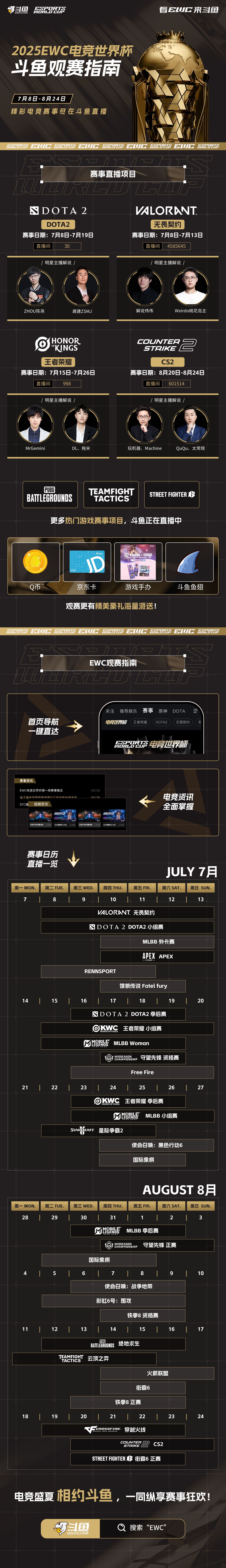 此外,斗鱼还在不断加码自制赛事。推出和平精英黄金大奖赛、三角洲行动英雄赏金赛、无畏契约鱼鱼杯、斗鱼DOTA2宝可梦S5等平台自制赛事三十余场。