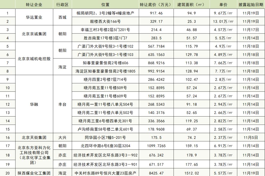 这3家北京国有房企仅10月单月挂牌的住宅、公寓类房产总转让底价就接近3亿元。