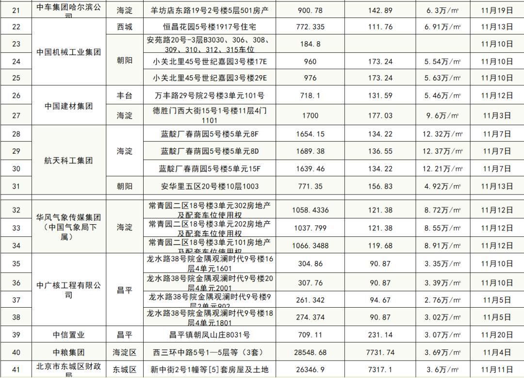 首开集团在10月挂牌了12套住宅、公寓和1个商业单元,合计约1.1亿元;
