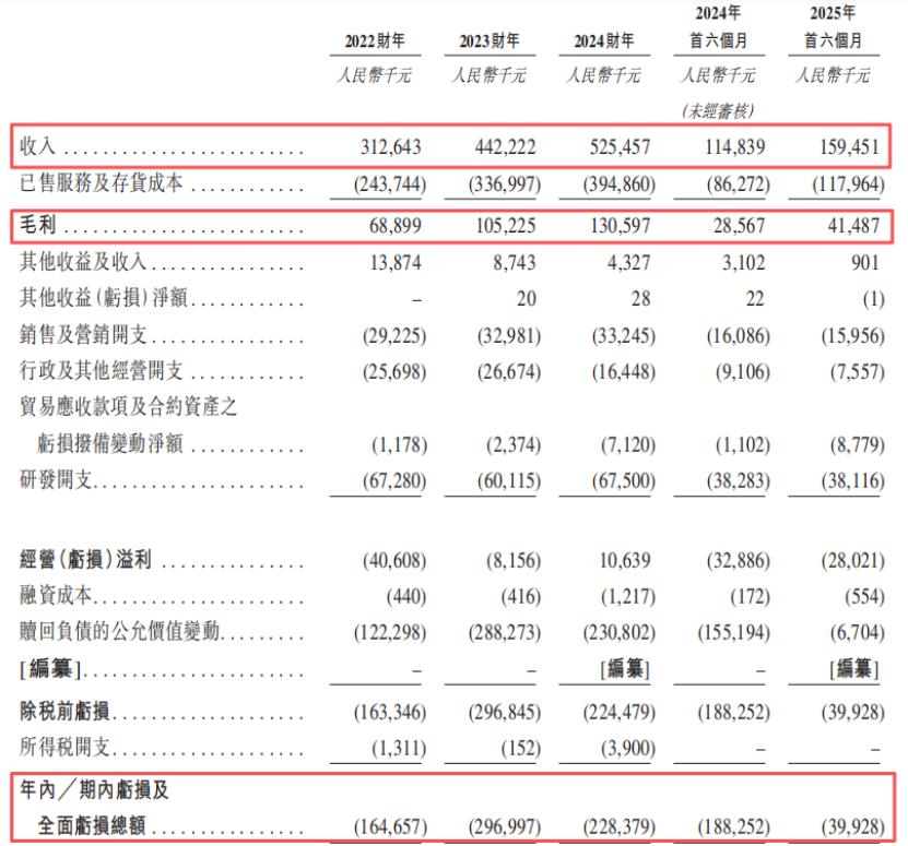 2022年、2023年、2024年及2025年1-6月(报告期),公司的收入分别为3.13亿元、4.42亿元、5.25亿元、1.59亿元。