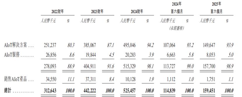 1、AIoT解决方案,向客户提供跨行业及行业特定的AIoT解决方案;2025年上半年这部分收入的占比为93.9%;