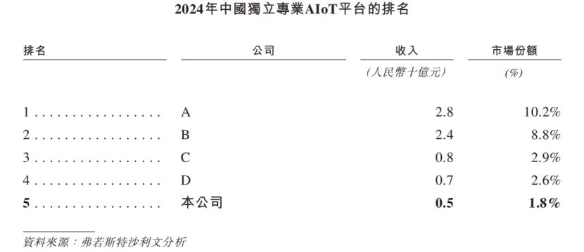 2024年中国独立专业AIoT平台的排名,来源:招股书