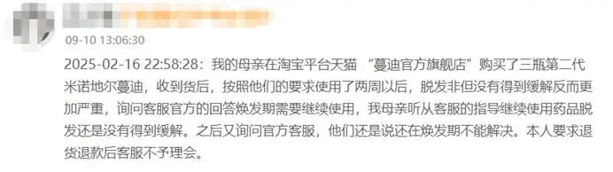 03 防脱发产品遭投诉:蔓迪泡沫米诺被指“越用越油”、“退款难”