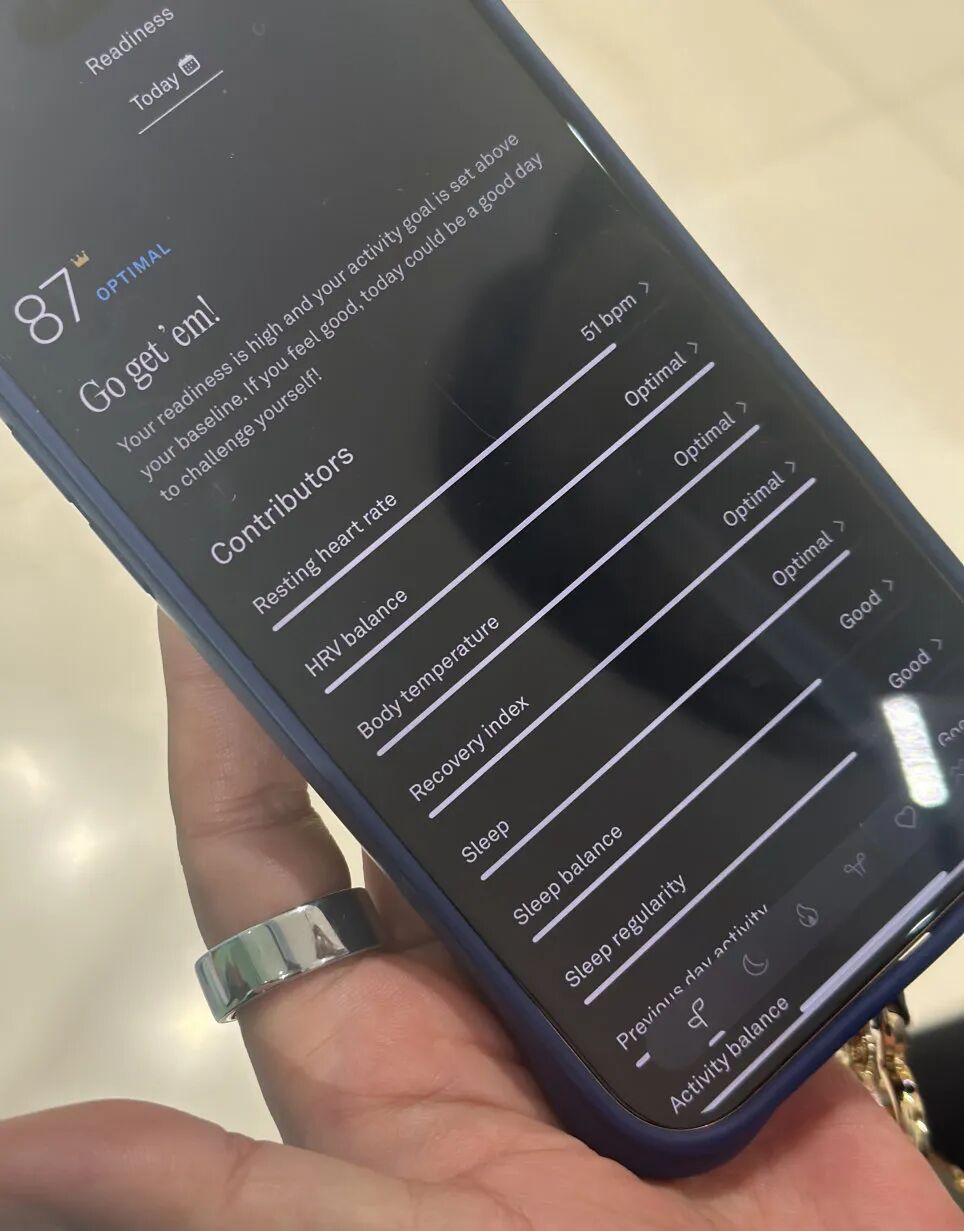 在社交媒体上被Oura Ring智能戒指的颜值吸引后,她立马去亚马逊海外购上深入了解了这个芬兰品牌,最终被品牌的专业背书说服。现在,这枚戒指不仅帮助她量化管理睡眠和身体状态,也让她感受到科技产品可以如此轻量、优雅地融入生活。