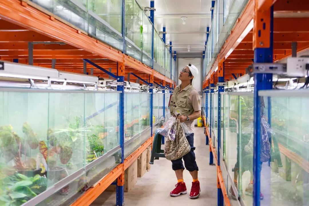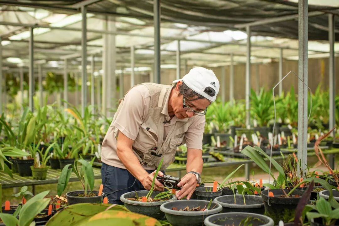 我们见到阿介的时候,他正带着老花眼镜在24摄氏度的恒温冷房里检查植物。之前的半个月,他都待在没有手机讯号的荒野做采集。全球热带植物的栖息地被严重破坏,阿介从森林带回了很多濒危植物,让它们好好活在保种中心。