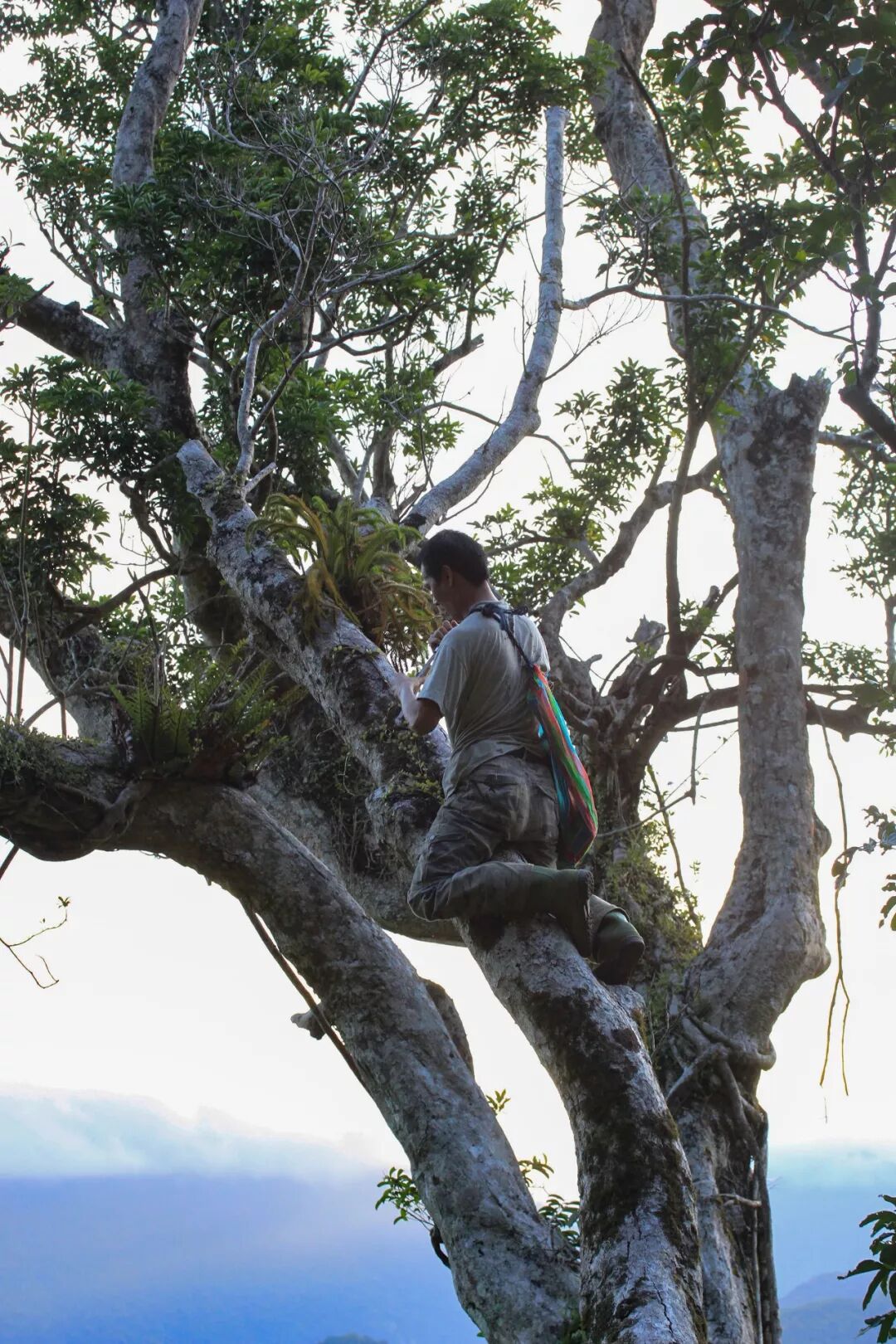 这首先是因为,很多植物学家做不到的事情,阿介都能做到。为了采集,他爬上过几千棵4、5层楼高的树,能轻松地从一棵树跳到另一棵树。