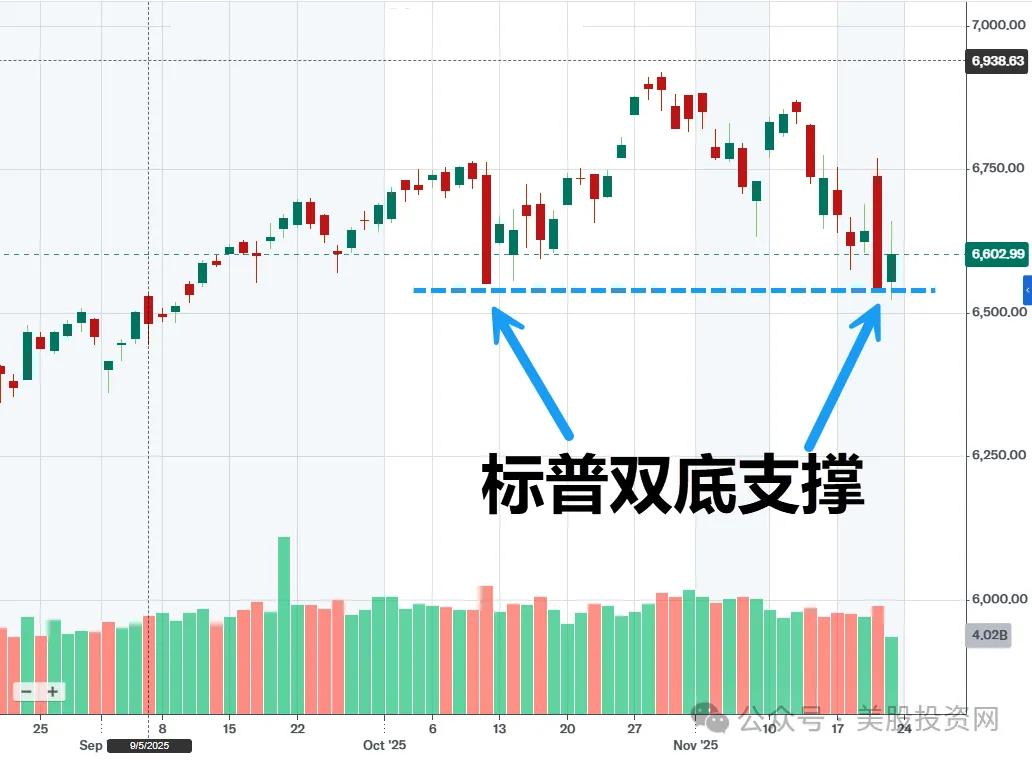 其实在我们上周五的文章曾明确提示,标普500指数回踩了10月10日的关键支撑位置。上周五以及本周一的行情有力地验证了这一预判:一旦此处防线稳固,市场就将如期展开一轮强劲的反弹走势。