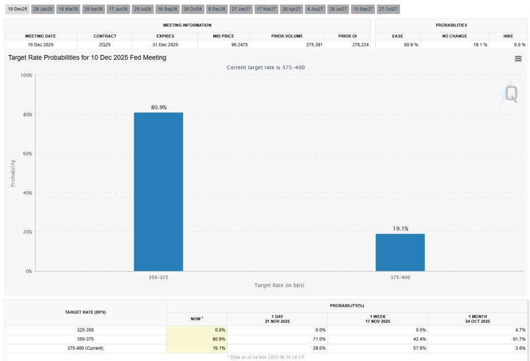 在“三鸽齐鸣”的推动下,货币市场迅速定价:交易员目前预计Fed在12月降息的可能性已飙升至超过80%。