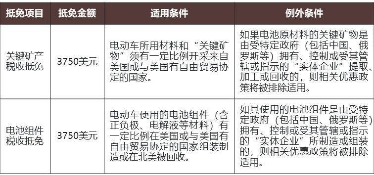 法案里明确要求,美国车企使用的电池组件和关键矿物(比如锂、镍、钴、石墨),不能有中国、俄罗斯、朝 鲜、伊朗等企业的成分,否则就拿不到 7500 美元的税收减免。