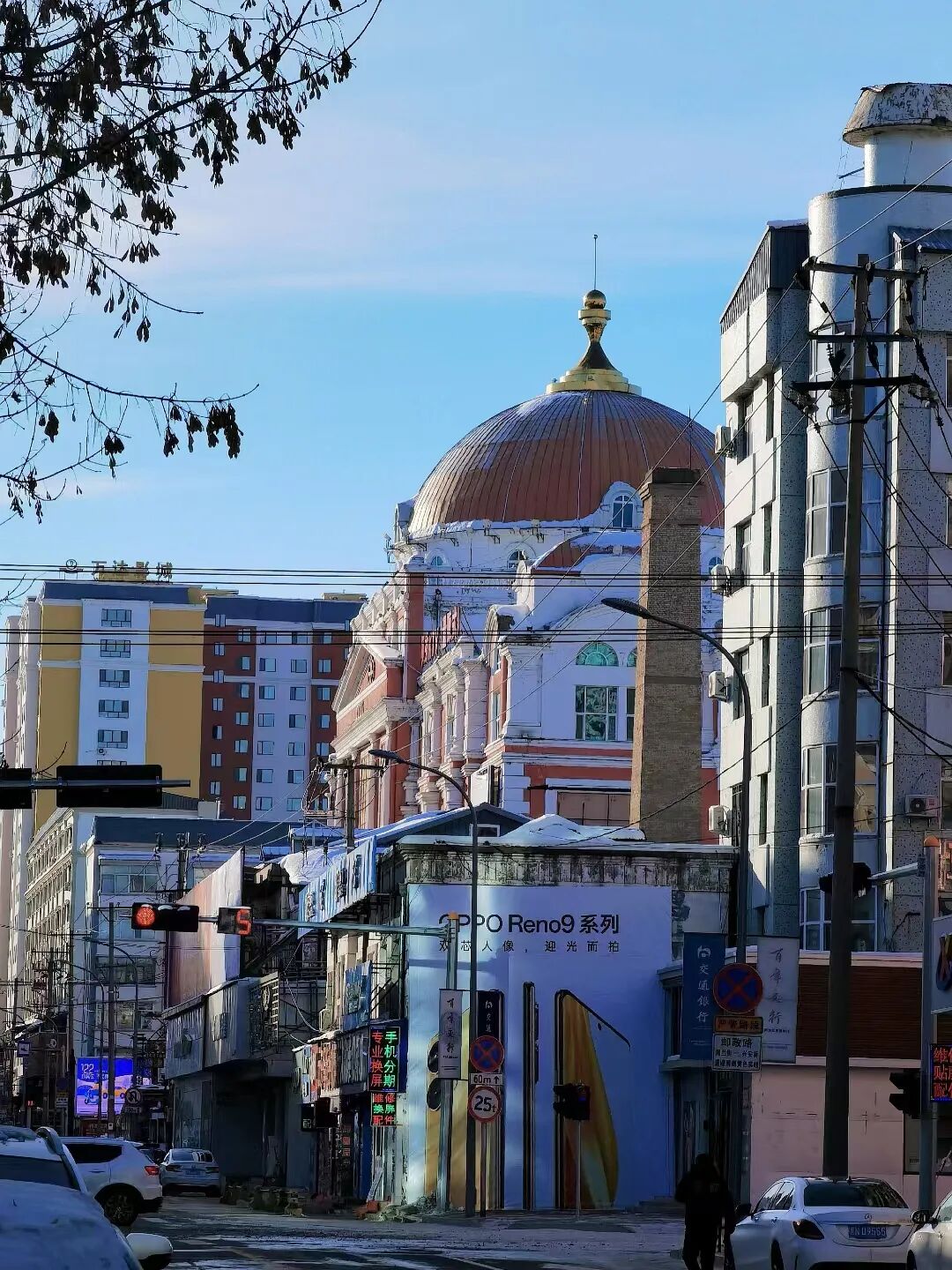 它不似哈尔滨那般,精细且极致的“张扬”, “走在街上,建筑似孤独的艺术。有的是哥特式塔楼,有的是文艺复兴式穹顶,有的是孟莎式屋顶,连公交站都是墨绿色俄式风格的。”