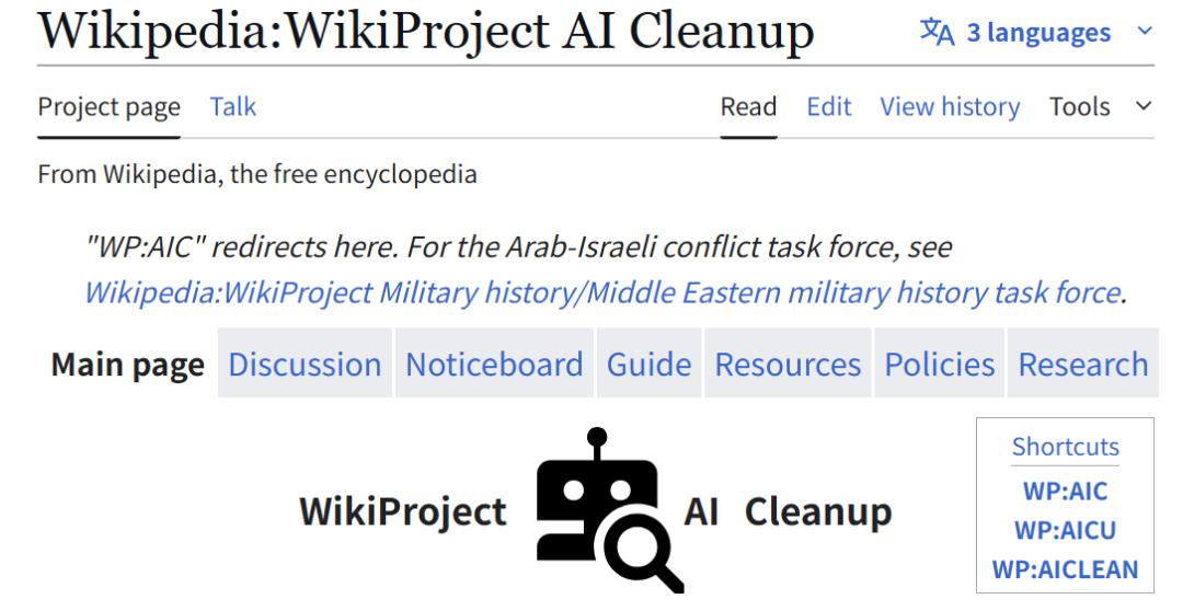 传送门:https://en.wikipedia.org/wiki/Wikipedia:WikiProject_AI_Cleanup
