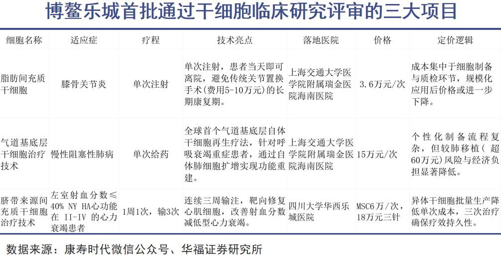 3月22日,在第二届博鳌乐城干细胞大会上,有三大项目完成首批干细胞临床研究评审,分别对应膝骨关节炎、慢性阻塞性肺病(COPD)及心力衰竭,并且首次公布了价格标准,标志着中国干细胞疗法进入逐步落地时代。
