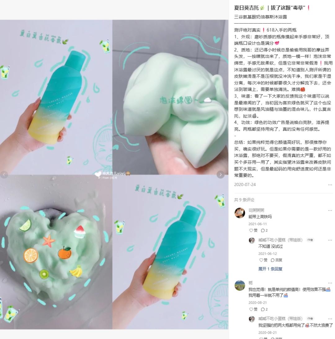 社媒平台关于三谷慕斯沐浴露使用分享帖,来源:小红书