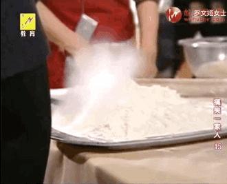 这一天,文姬正在和面,儿子就这么出现在了面板前,背对着面粉当场开始了他的表演——