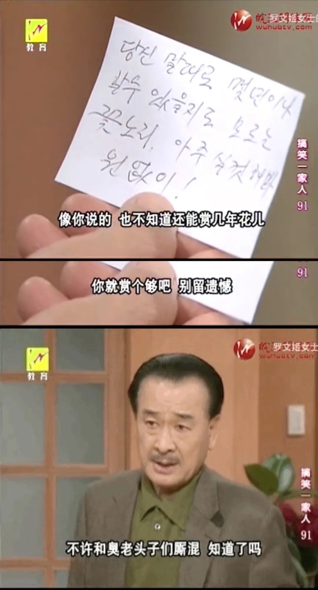 倒是想起《搞笑一家人》的一段剧情,罗文姬女士去看春天的花时,顺才站在后面说: