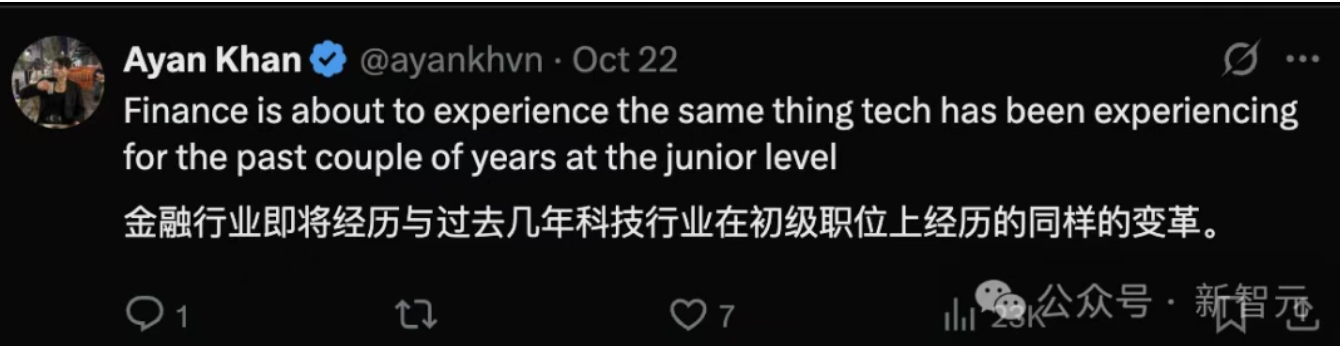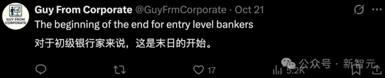 有网友预言,金融行业即将重复过去几年科技行业在初级职位上所经历的变革。