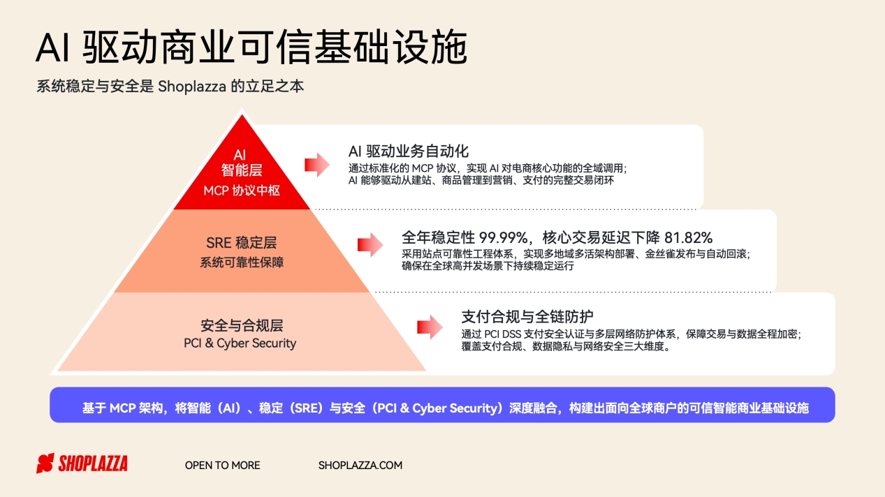 它一方面以 MCP 协议构建统一的系统能力接口,用垂直 AI Agent 推进智能化落地;另一方面在底层架构、稳定性与安全性上长期投入,以体系化机制提供跨区域、多流量、高复杂度场景下可持续的增长基础设施,目前已服务全球 65 万+ 商户。