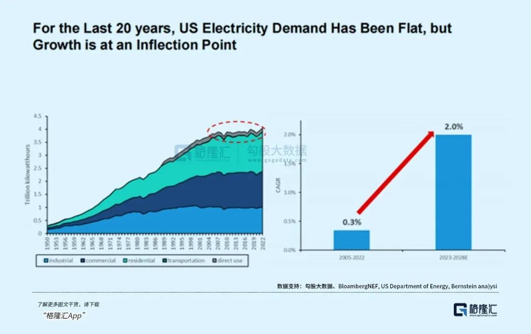 新能源的供给规模跟不上AI的增长速度。美国近10年发电总量基本稳定在4100太瓦时,欧洲也只有3120太瓦时,而仅AI数据中心的新增需求就将在未来几年突破千亿太瓦时。