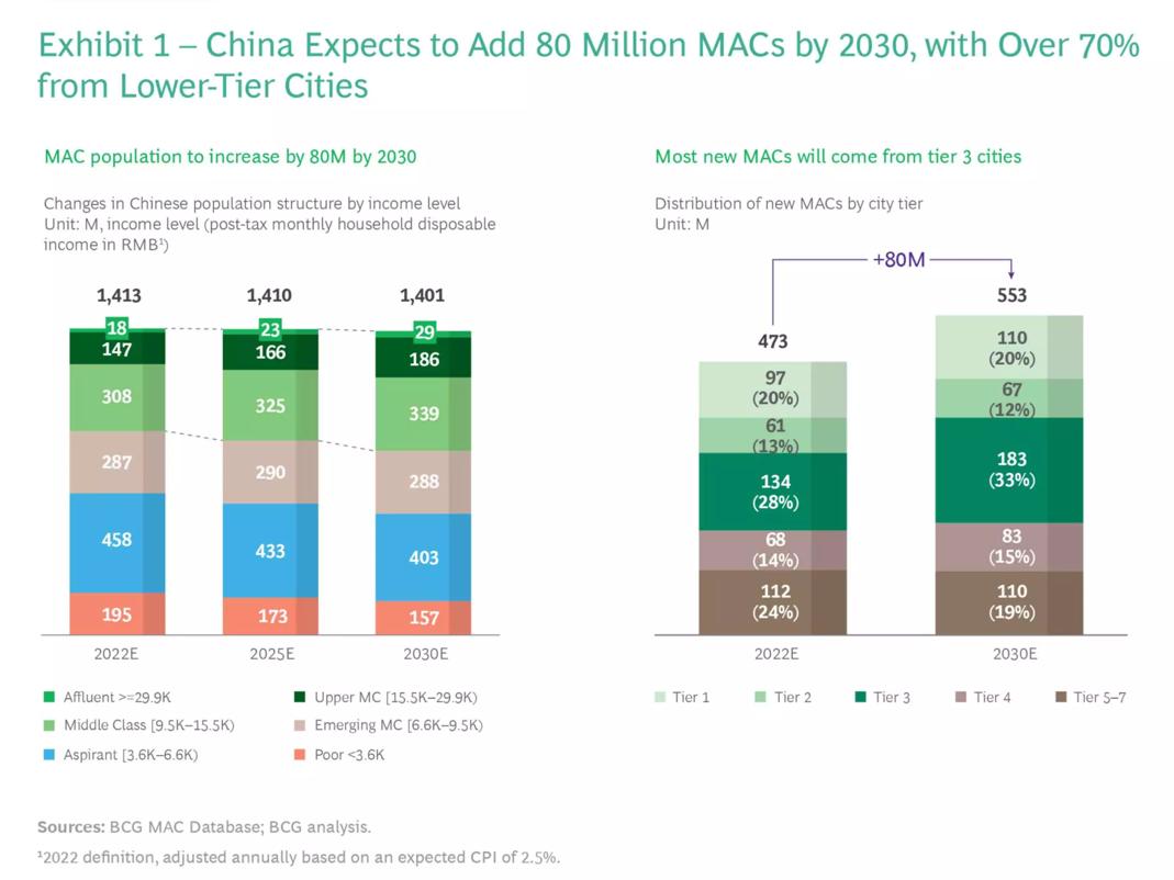 在国内市场,Barbour的崛起与“新中产”的出现息息相关。根据波士顿咨询公司(BCG)的数据显示,到2030年,中国的中产阶级和富裕人口将增加8000万,成为市场长期韧性的重要来源。
