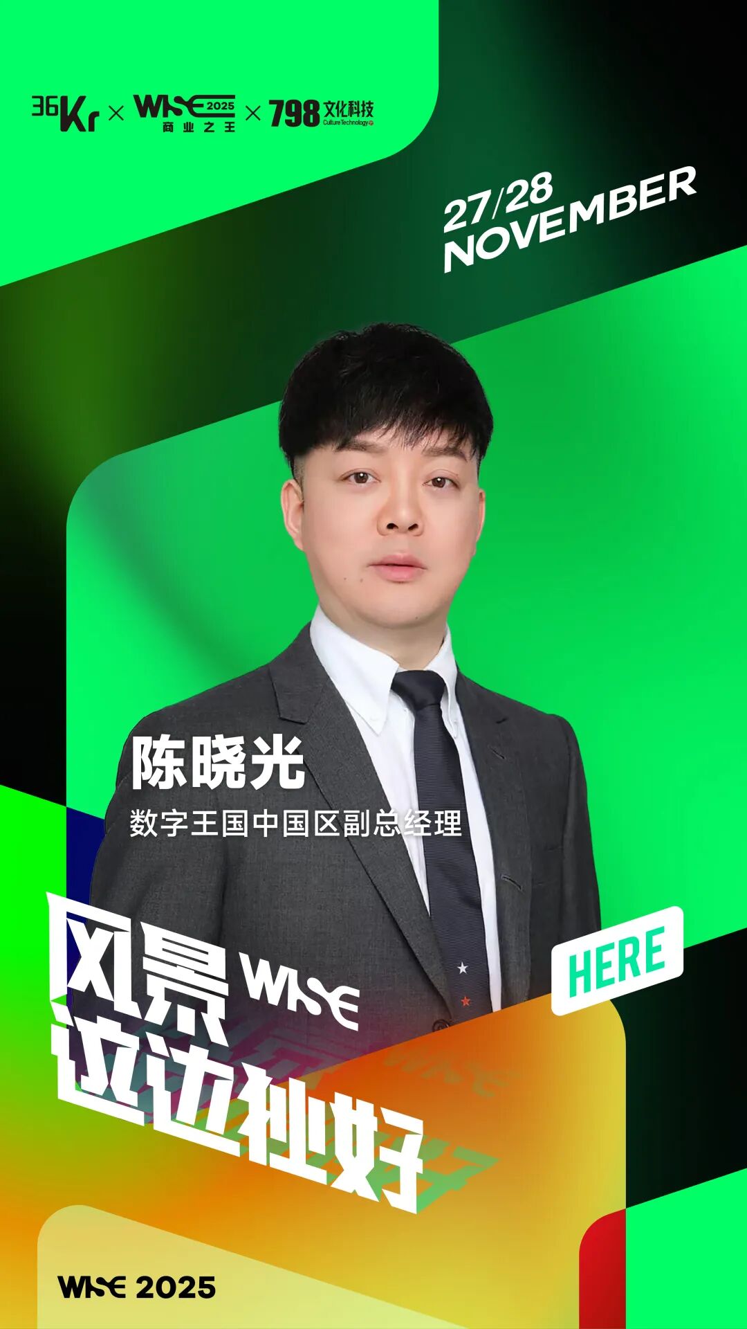 数字王国中国区副总经理陈晓光将探讨“AI+创意”如何重塑内容生产格局。当技术能自动生成剧情、角色甚至情感,创意是否也将进入“可编程时代”?