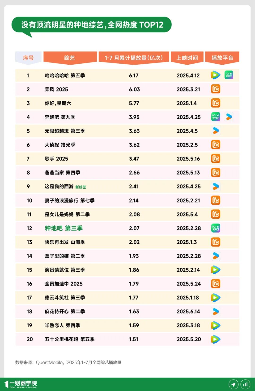 《种地吧》在2023年初开播,到2025年已经是第三季,按理说早该“糊”了。但它不仅持续霸榜爱奇艺的热播综艺榜单、在全网综艺播放量榜单中位列第十二,粉丝黏性也高到了一种近乎“偏执”的程度。当第三季传出有成员可能因个人通告而请假时,粉丝们立刻“揭竿而起”,强烈反对节目组加入新人。最终,导演组只能公开承诺“原班人马,绝不加新”,才平息了众怒。