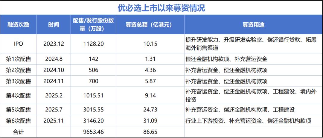 此次是优必选年内第3次配售,也是该公司2023年12月上市以来的第6次配售。随着配售次数增加,优必选的募资规模也越来越大,年内三次配售分别募资9.14亿港元、24.73亿港元、31.09亿港元。一年的时间,优必选合计配售募资超过70亿港元,是IPO募资额的7倍。