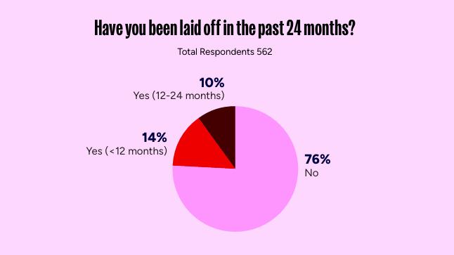裁员:28% 过去24个月被裁员(每2人中有1人仍在找工作)