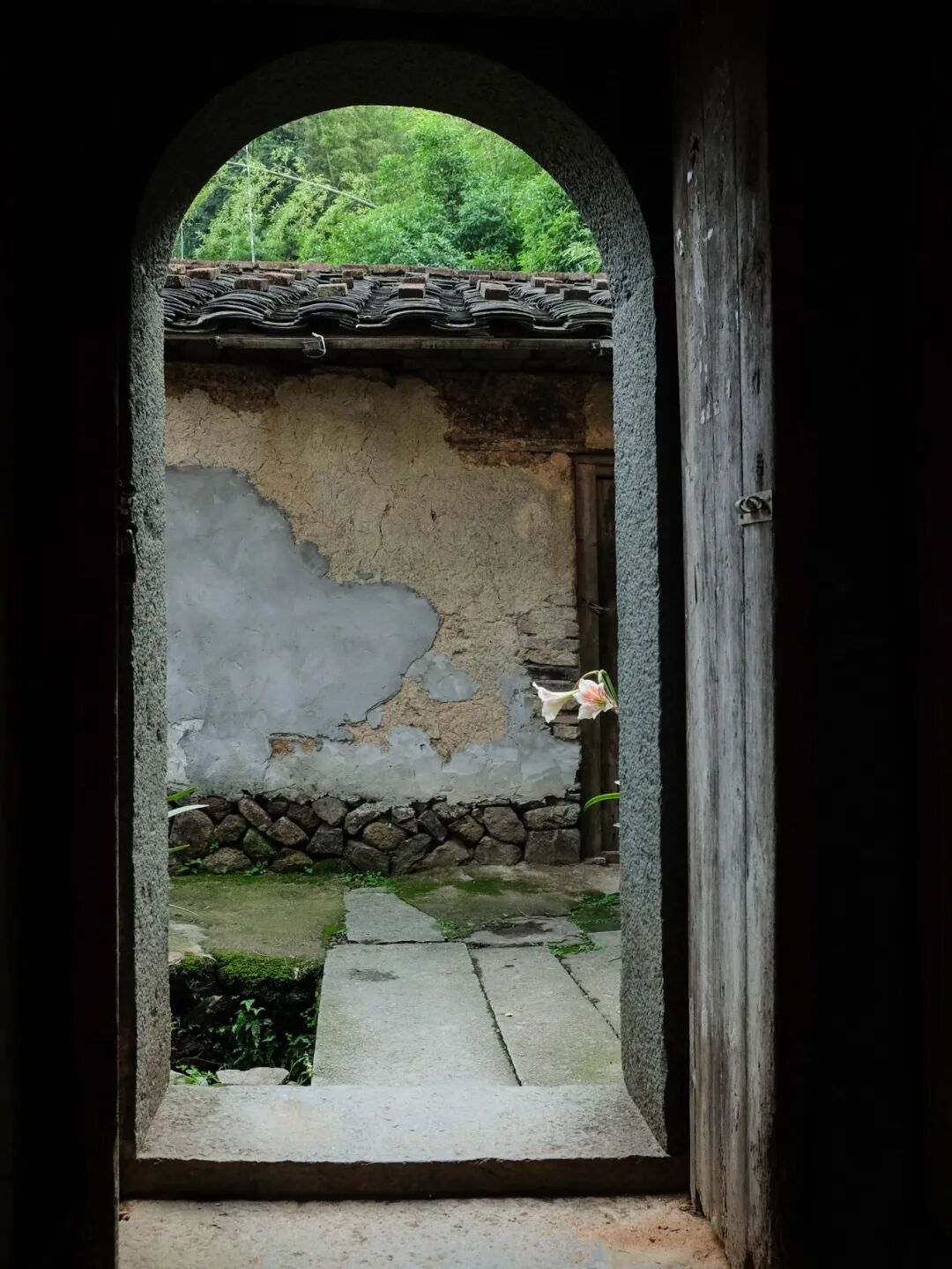 茶室及室内的石头墙,闽地常见的蕨类自由地生长进来
