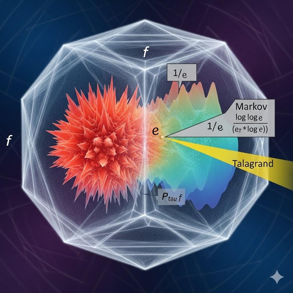 Talagrand的猜想是,在高斯空间或布尔超立方体等概率空间上对函数进行“加热平滑”(卷积)操作后,这个函数取到极大值的概率应该比马尔可夫不等式预测的还要低得多。