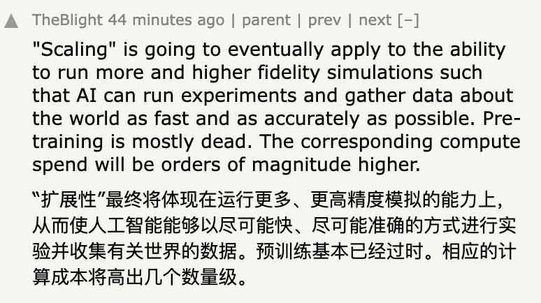 这种方法的优势是,公司愿意为它投入资源——因为这是「低风险投入」。相比之下,把资源投入研究要困难得多。研究意味着:「研究人员请继续探索,争取有所突破」,而不是「再拿点数据、再加点算力」。但预训练几乎能保证一定的收益,这种确定性非常诱人。