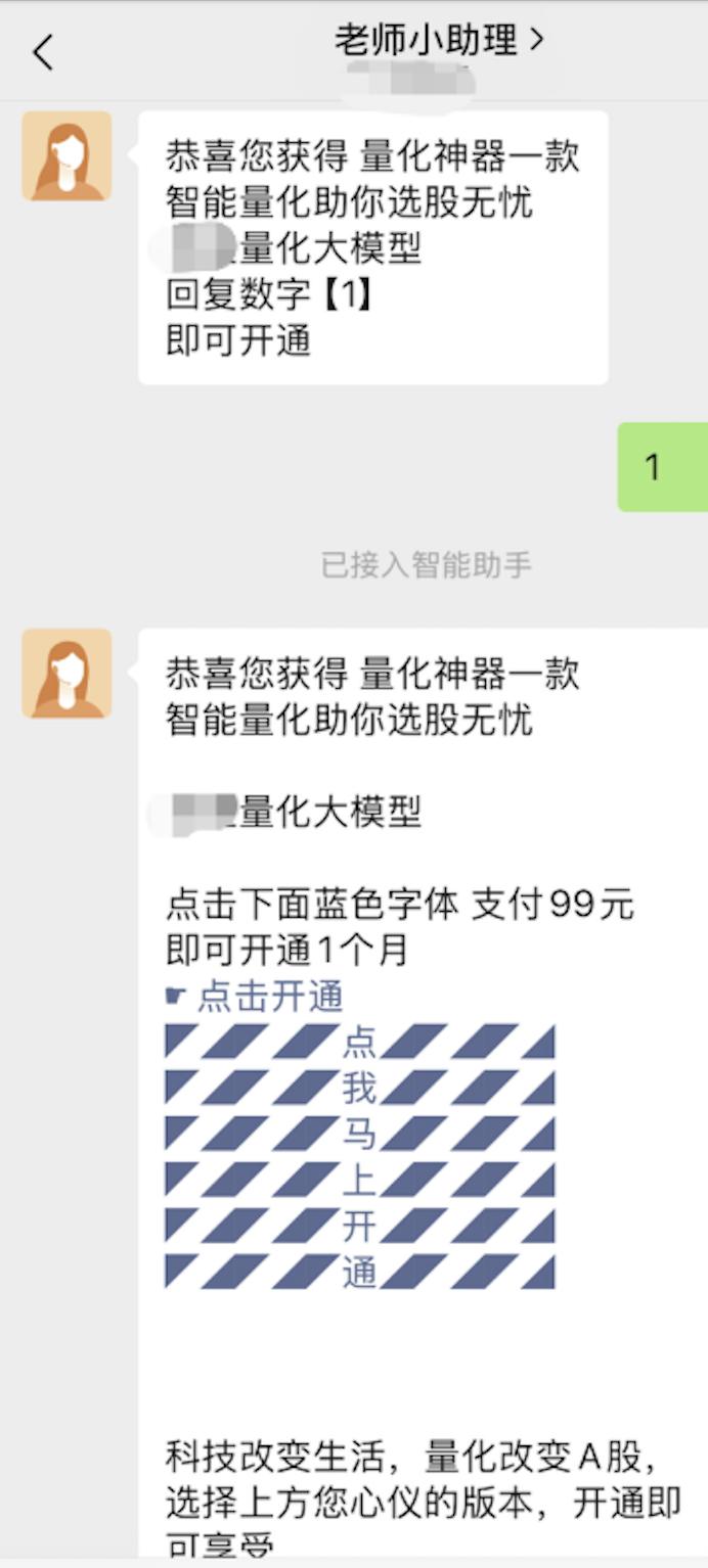 经过调研,这类量化系统的真实面目被揭开,多位购买过此类产品的投资者透露,所谓的“量化系统”本质上就是一款荐股工具。“每天早上盘前,系统会推送6只推荐股票,没有专业分析报告。”有投资者表示,自己花费99元购买了某款量化系统,使用后发现其核心功能就是“盘前给股票名单”,直播间宣传的“智能辅助决策”“量化战法”仅是营销话术。