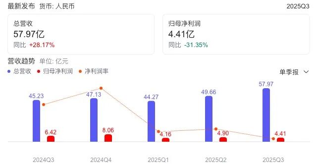 本季度归母净利润仅为4.41亿元,直接以同比下滑近31.35%,一举超越今年Q1同比下滑28.52%的纪录,创下了自去年Q4以来的同比下滑幅度之最。