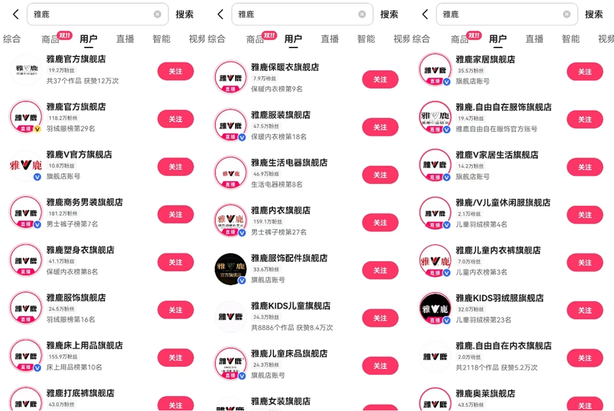 在店铺数量增长的同时,雅鹿也同步开启品类扩张之路。发展至今,雅鹿在快手覆盖内衣、家纺、童装、男装、女装等多个类目,全品类的布局相较单一赛道进一步带动品牌GMV规模立体化增长。