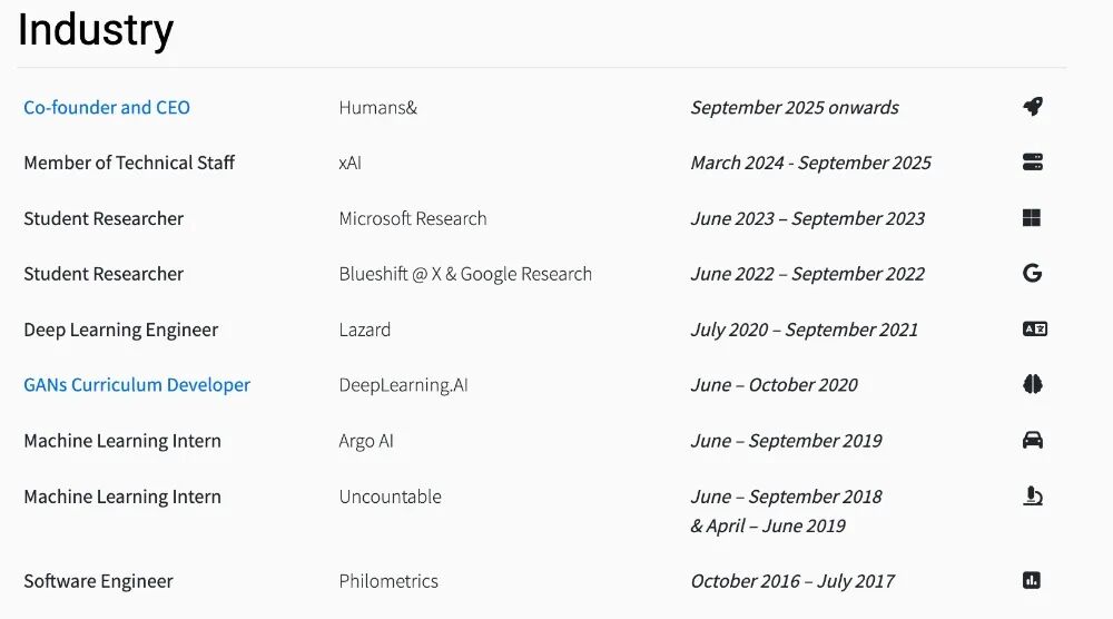今年9月,泽利克曼离开xAI重返校园,继续攻读斯坦福大学博士,并且成立了Humans&。