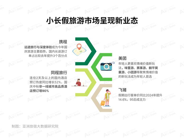 小长假旅游市场呈现新业态|10月,由于国庆中秋双节小长假出行高峰,各大OTA旅企发布双节出行报告,分析研判小长假国内旅游市场的变化以及一些旅游新业态。