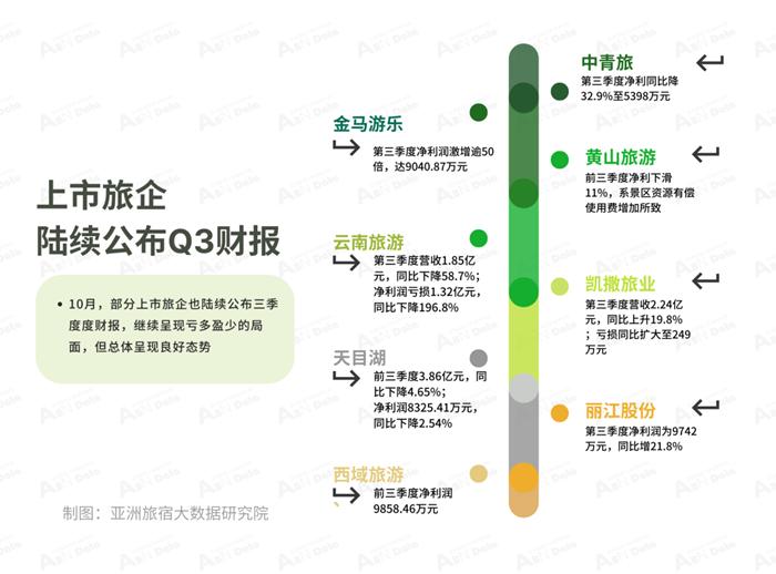 上市旅企陆续公布Q3财报|10月,部分上市旅企也陆续公布三季度度财报,继续呈现亏多盈少的局面,但总体呈现良好态势。