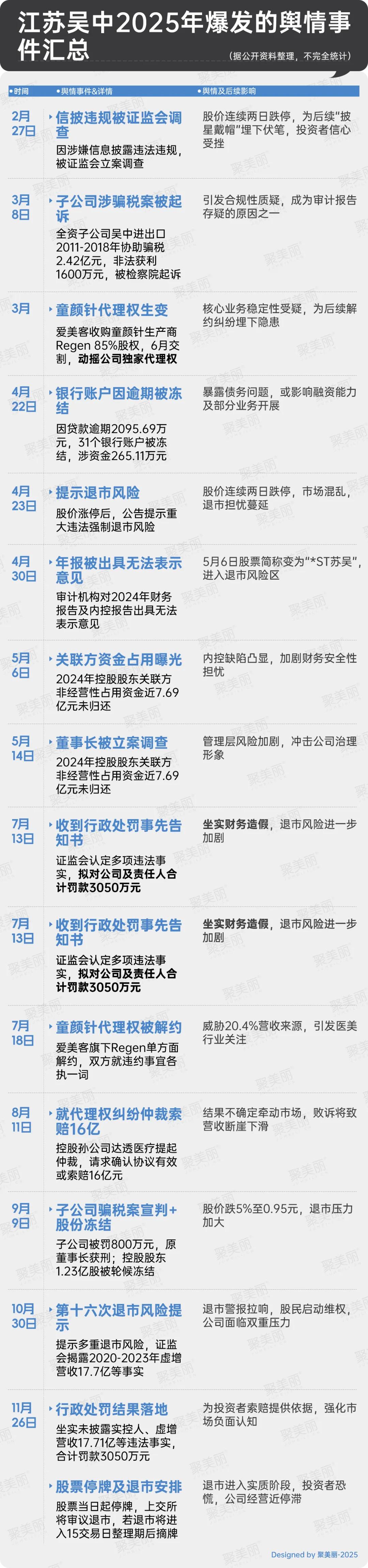 不仅如此,在今年江苏吴中集中爆发舆情,还存在童颜针代理权生变、子公司涉骗税案被起诉、因贷款逾期账户被冻结等负面事件。