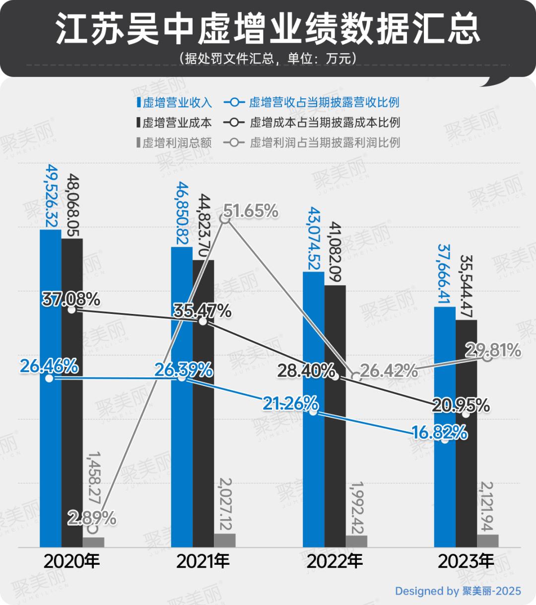 且江苏吴中通过该手段造假多项财务数据,从而虚增2020-2023年营收、成本及利润,主要内容如下: