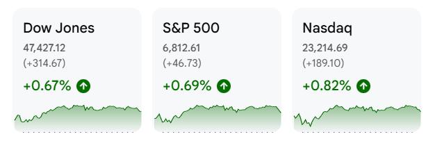 从基础逻辑来看,本轮节前上涨具备相对扎实的支撑:宏观数据稳健、企业资本开支未显疲态、科技/AI 板块重新获得资金青睐,加之市场对美联储 11 月降息的押注升温,共同推动风险资产展开修复。