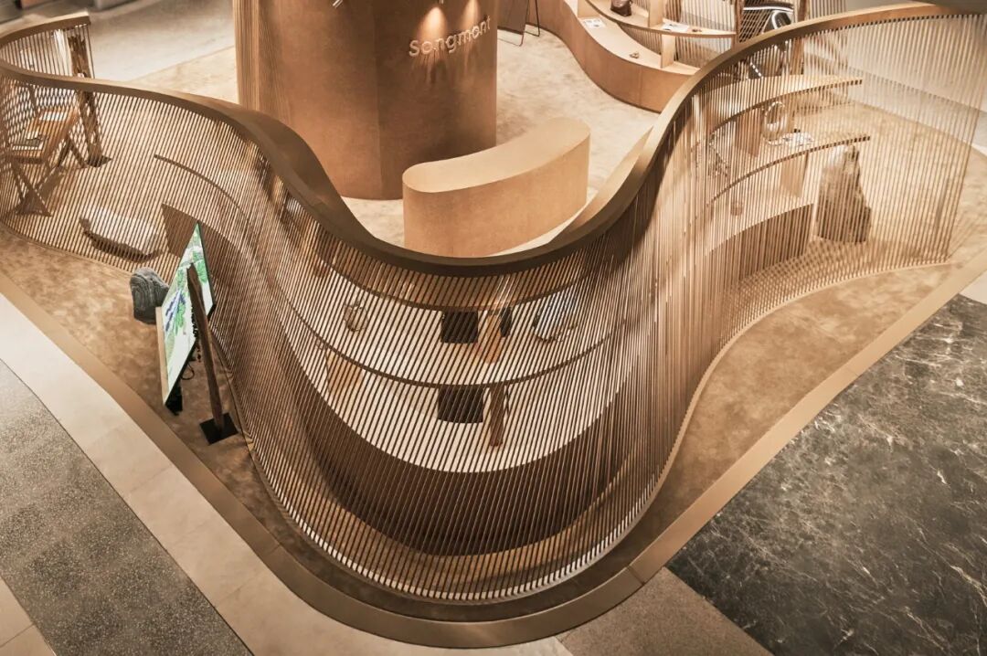 其线下门店的设计中也常常出现岩石、山、河滩、土壤等意象,2025年7月在泰国曼谷开业的快闪店同样以中原的“香文化”为灵感,店内的金色金属与纱帘一同构成“香炷森林”——东方美学的形象在从外到内的包裹中愈加清晰,某种程度上也构成了一道隐形壁垒。