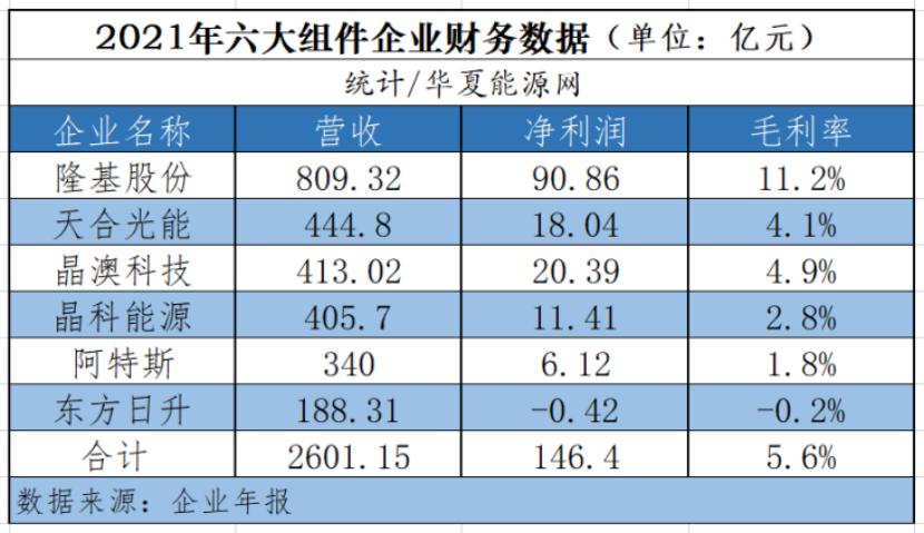 2021年,东方日升实现营收188.31亿元,同比增长了17.23%,但却净亏损0.42亿元,同比下降了125.59%。这一年各大组件龙头利润进一步增长,隆基绿能、天合光能、晶澳科技、晶科能源、阿特斯合计净赚了146亿,东方日升是Top6组件企业中唯一一家亏损的。